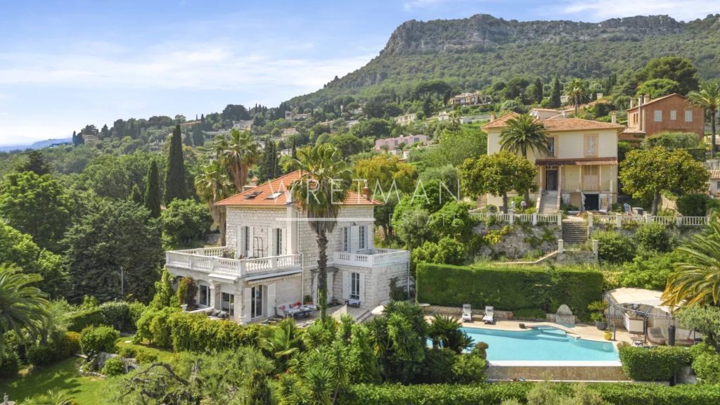 Bara ett stenkast från byn Vence ligger denna eleganta 240 m² stora stenvilla med 4 sovrum, panoramautsikt över havet, 1 500 m² anlagd trädgård och uppvärmd pool. En sällsynt egendom som kombinerar autentisk charm och moderna bekvämligheter.