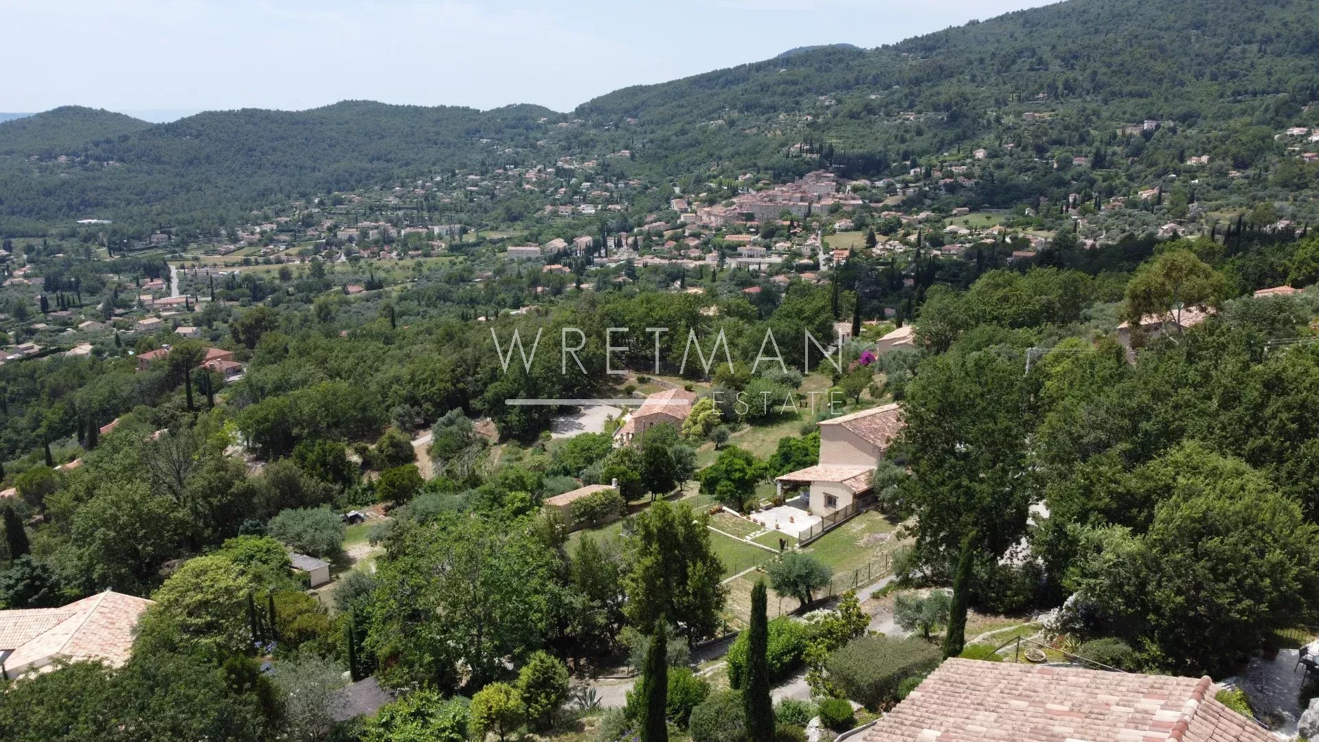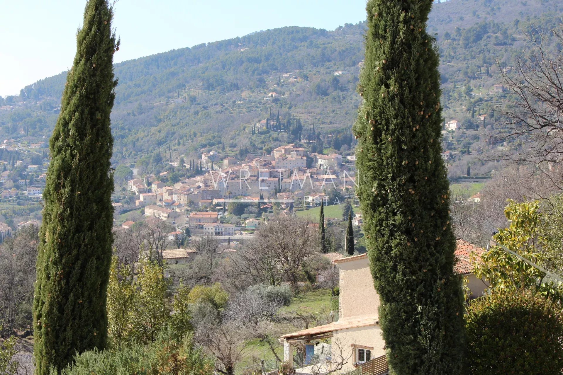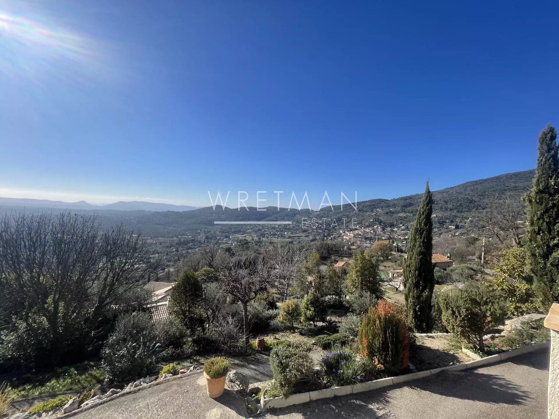 På en sydvänd kulle med utsikt över havet och byn Seillans ligger denna 240 m² stora villa på en lugn, privat gata.