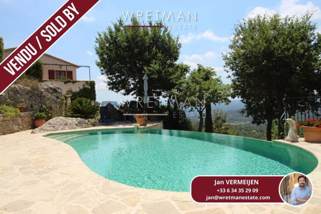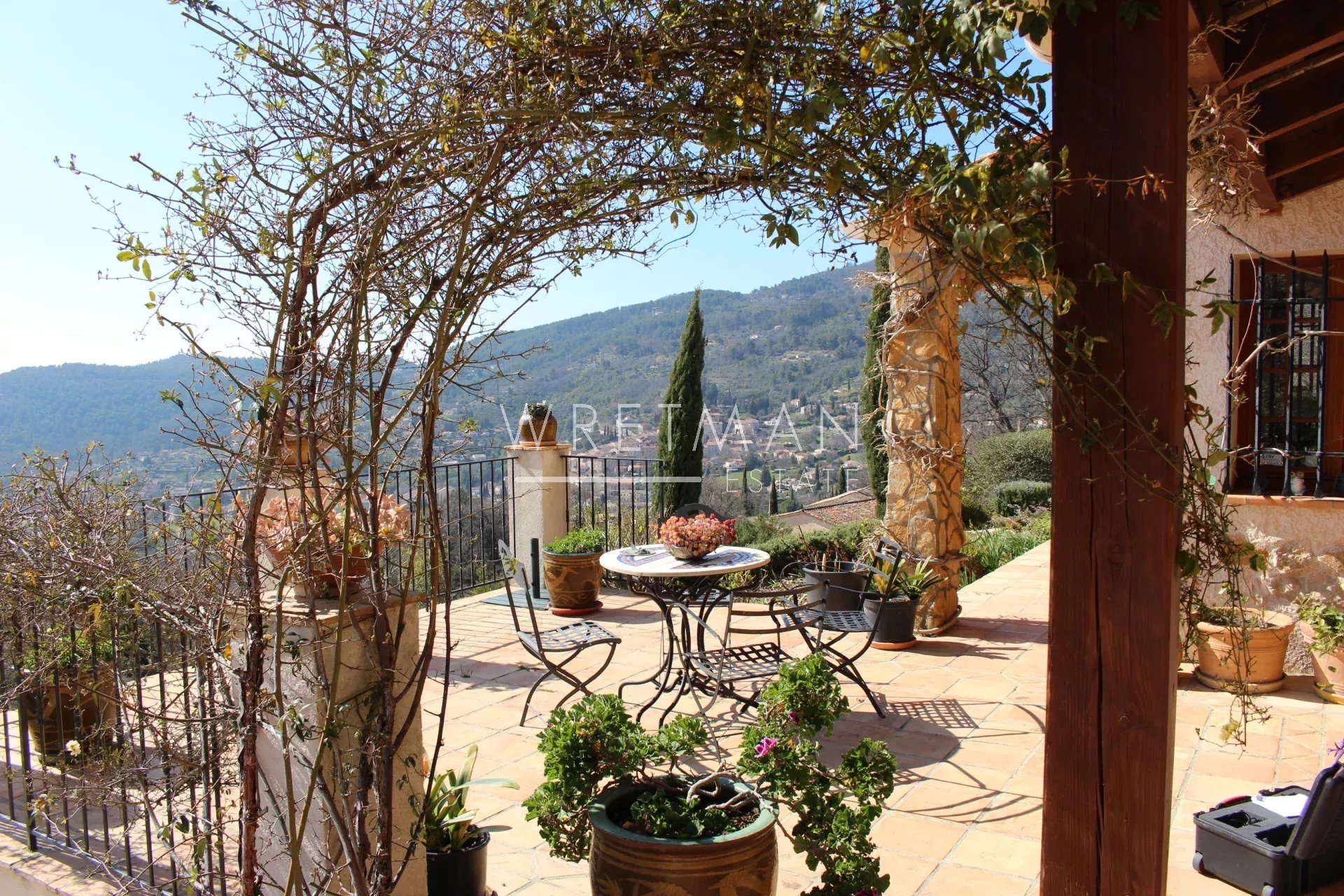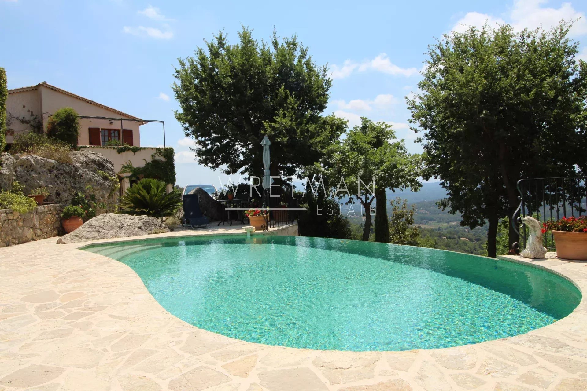 På en sydvänd kulle med utsikt över havet och byn Seillans ligger denna 240 m² stora villa på en lugn, privat gata.