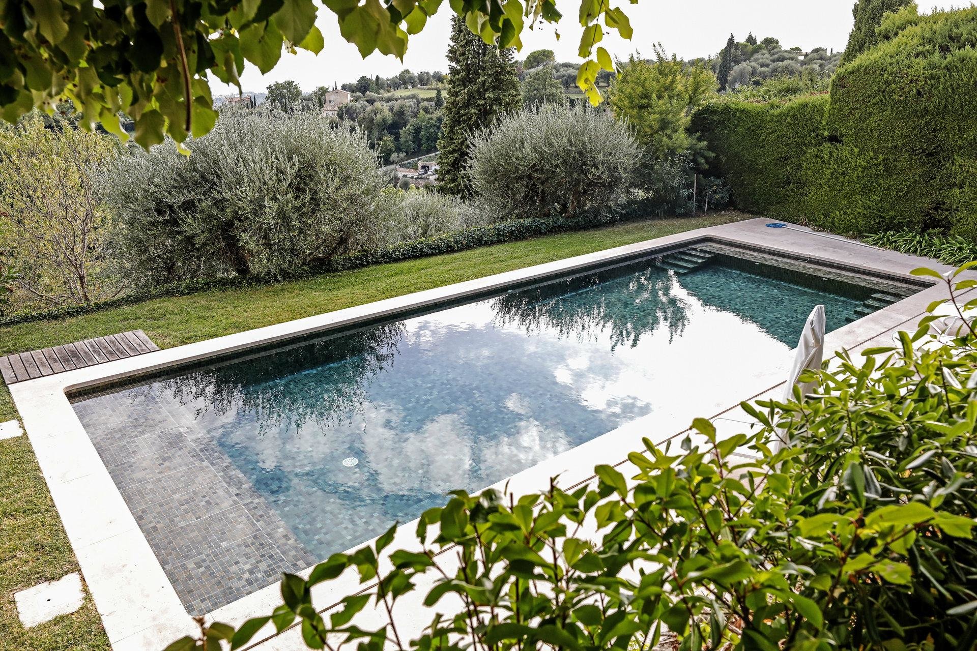 In this villa’s 5000 m² garden, you have a staggering view of the South of France coast and the Esterel mountains.